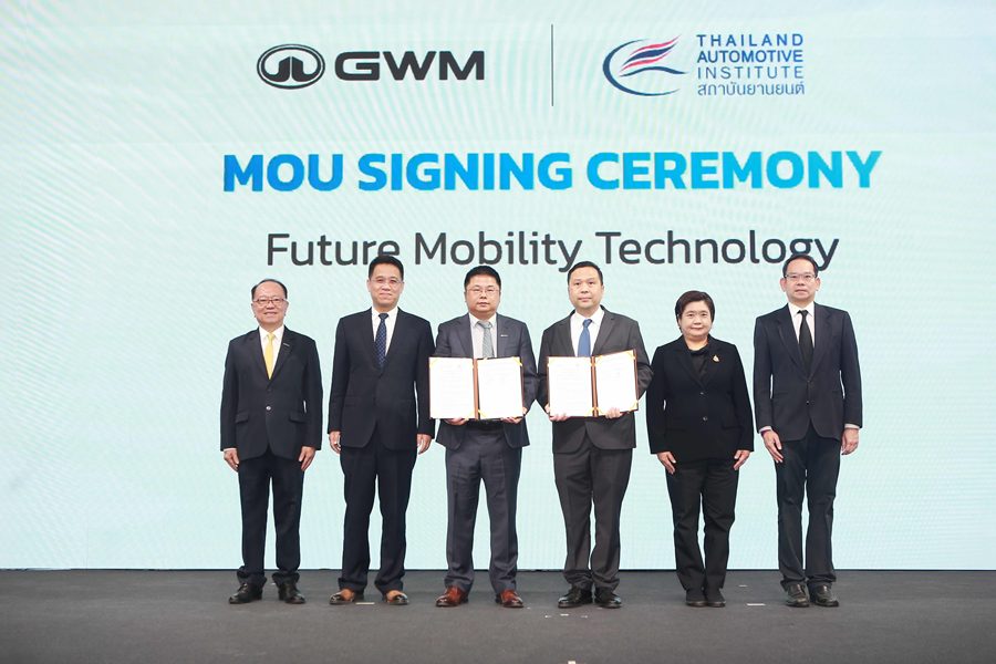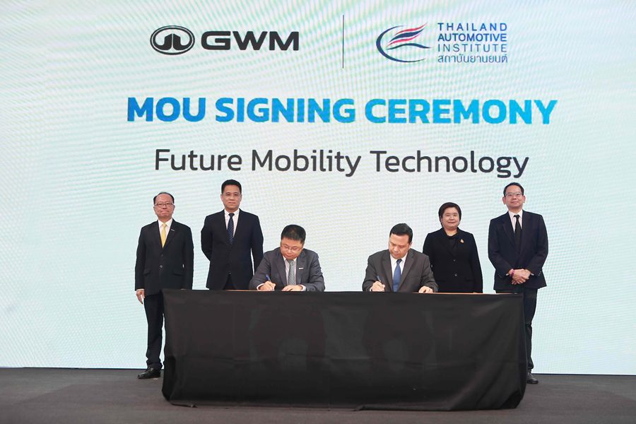 GWM (Thailand) ได้จัดพิธีลงนามบันทึกข้อตกลงความร่วมมือ (MOU) ร่วมกับสถาบันยานยนต์ (TAI) เพื่อส่งเสริมความร่วมมือด้านการวิจัย พัฒนา และยกระดับขีดความสามารถ เพื่อขับเคลื่อนนวัตกรรมการเดินทางแห่งอนาคต โดยมีผู้แทนจากกระทรวงอุตสาหกรรมและผู้บริหารจาก GWM ร่วมเป็นสักขีพยาน สะท้อนถึงความร่วมมือระหว่างภาครัฐและภาคเอกชนในการกำหนดทิศทางอุตสาหกรรมยานยนต์พลังงานใหม่ของประเทศไทย