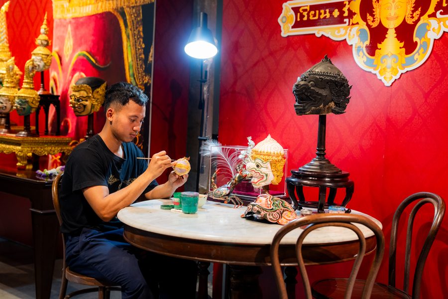 วันเดย์ทริปสุดเอ็กซ์คลูซีฟที่พาไปสัมผัสเสน่ห์กรุงเก่า กับวิถีสโลว์ไลฟ์แบบไทยๆ อาทิ ชวนเช็คอินศิลป์แผ่นดิน – เติมเต็มแรงบันดาลใจด้วยสุนทรียภาพแห่งศิลปะไปกับไฮไลท์แรก ด้วยการพาเหล่าสมาชิกเปิดประสบการณ์ทางวัฒนธรรม ณ ศูนย์ศิลปาชีพเกาะเกิด เยี่ยมชมจุดท่องเที่ยวสำคัญอย่าง พิพิธภัณฑ์ศิลป์แผ่นดิน สถานที่ที่รวบรวมสุดยอดหัตถศิลป์ชั้นสูงอันทรงคุณค่าและหาชมได้ยากไว้ในที่เดียว ทั้งยังเป็นหนึ่งในหมุดหมายห้ามพลาดที่ใคร ๆ ต่างบอกว่าควรแวะไปเยี่ยมชมสักครั้งในชีวิต รวมถึงอาคารผลิตภัณฑ์ศูนย์ศิลปาชีพเกาะเกิด และ อาคารเรียน-รู้-เรื่องโขน