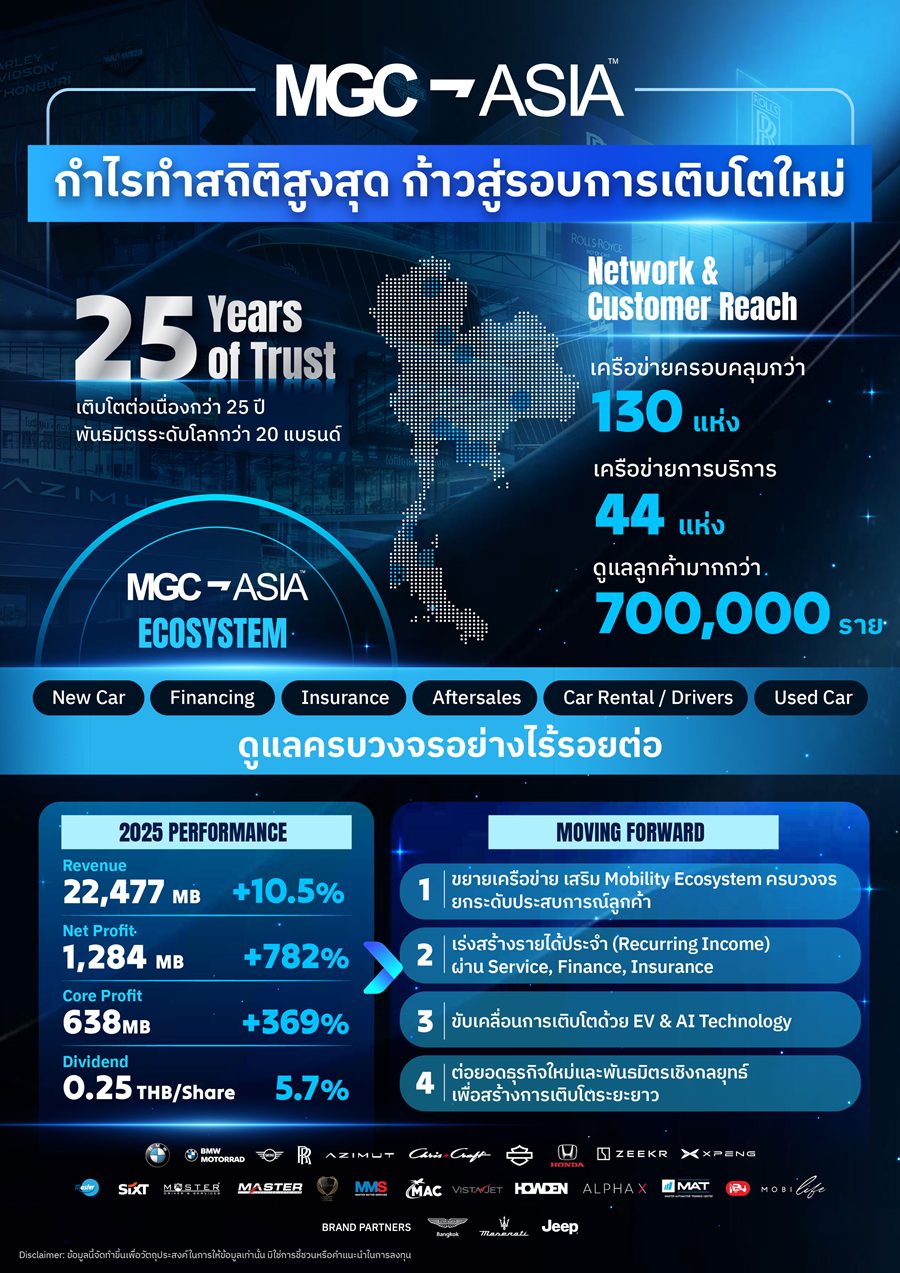 MGC-ASIA รายงานผลการดำเนินงานปี 2568 ทำสถิติกำไรสุทธิถึง 1,284 ลบ. ตอกย้ำการเข้าสู่รอบเติบโตใหม่