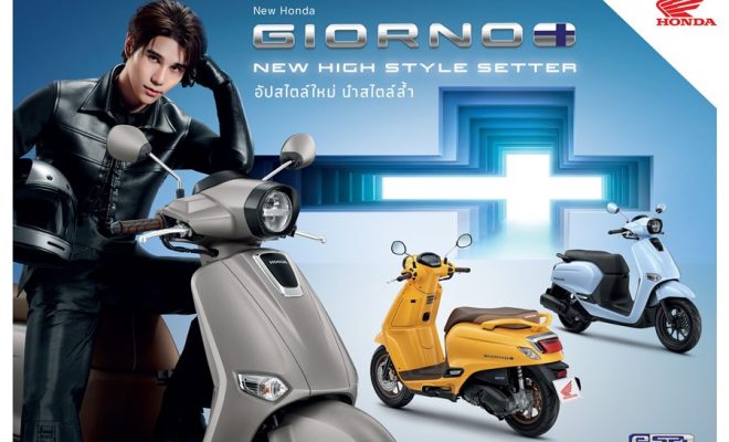 ไทยฮอนด้า เปิดตัว New Honda Giorno+ อัปสไตล์ล้ำไปอีกขั้นกับ 7 เฉดสีใหม่ ภายใต้คอนเซ็ปต์ “New High Style Setter อัปสไตล์ใหม่ นำสไตล์ล้ำ” เติมมิติใหม่ด้วยดีไซน์และ คู่สีที่พัฒนาให้โดดเด่น ผสานสมรรถนะและฟังก์ชันการใช้งานครบครัน ตอบโจทย์ไลฟ์สไตล์คนเมืองยุคใหม่อย่างลงตัว พร้อมทั้งยังได้ ‘เจฟ ซาเตอร์’ สานต่อบทบาทการถ่ายทอดตัวตนของ New Honda Giorno+ ที่มีทั้งความเท่และความพรีเมียม สะท้อนภาพลักษณ์สไตล์ของคนรุ่นใหม่อย่างเต็มพิกัด