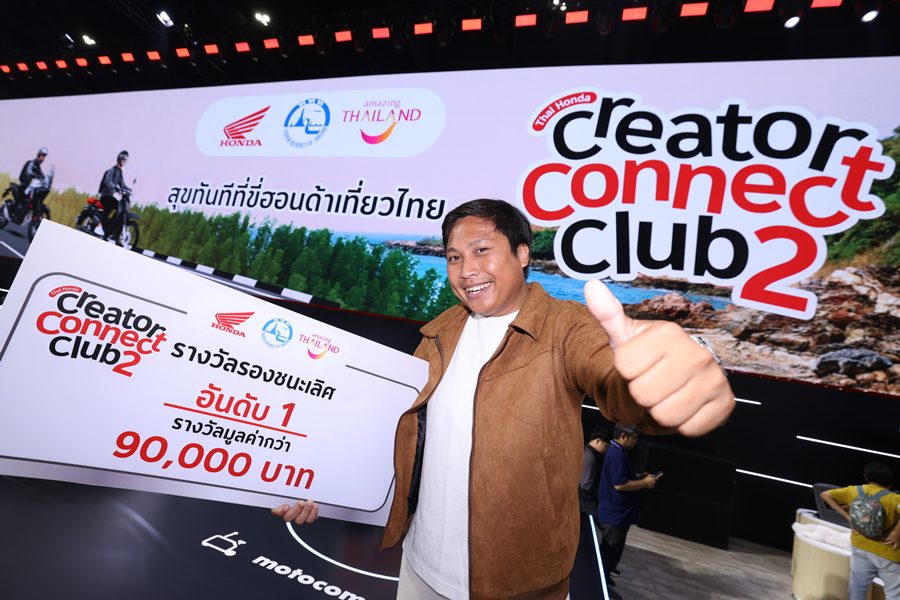 โครงการ “Thai Honda Creator Connect Club ปีที่ 2: สุขทันทีที่ขี่ฮอนด้าเที่ยวไทย” ในปีนี้ได้รับกระแสตอบรับอย่างล้นหลามจากครีเอเตอร์ทั่วประเทศ โดยมีผลงานส่งเข้าร่วมกว่า 400 คลิป ก่อนคัดเลือกเหลือ 20 คนสุดท้าย เข้าร่วมกิจกรรม Thai Honda Creator Connect Camp สุดเอ็กซ์คลูซีฟ 3 วัน 2 คืน ณ จังหวัดระยอง เรียนรู้เทคนิคการสร้างคอนเทนต์จากกูรูระดับแนวหน้า พร้อมลงมือสร้างผลงานจริงผ่านประสบการณ์การเดินทางด้วยรถจักรยานยนต์ฮอนด้า บิ๊กไบค์ และ CUB House หลากหลายรุ่น ไปยังสถานที่ท่องเที่ยวต่าง ๆ รอบจังหวัดระยอง เพื่อถ่ายทอดเรื่องราวภายใต้โจทย์ “สุขทันทีที่ขี่ฮอนด้าเที่ยวไทย” เชื่อมโยงผู้คนให้ค้นพบ “ความสุขที่เกิดขึ้นได้ทันที” จากทุกการเดินทางในประเทศไทย ก่อนคัดเลือกผลงานที่โดดเด่นที่สุดจนได้ผู้ชนะในที่สุด สะท้อนให้เห็นถึงพลังของความคิดสร้างสรรค์ และตอกย้ำว่าทุกการเดินทางสามารถกลายเป็นแรงบันดาลใจที่ยิ่งใหญ่ได้เสมอ