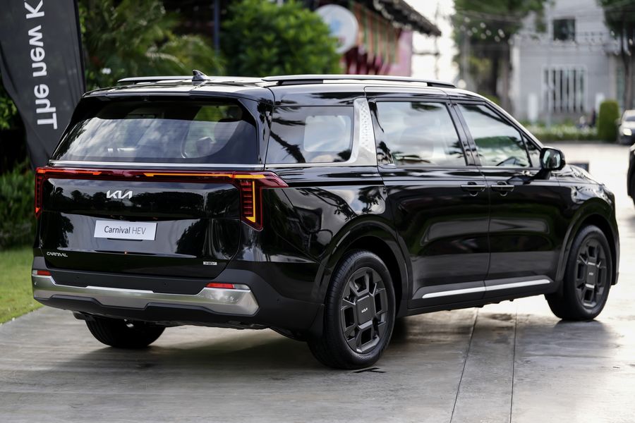 The new Kia Carnival HEV 7-seater จำหน่ายในประเทศไทย 2 รุ่นย่อย ได้แก่ The new Kia Carnival HEV 7-seat Luxury ราคา ราคา 2,699,000 บาท และ The new Kia Carnival HEV 7-seat Premium ราคา 2,499,000 บาท มาพร้อมกับดีไซน์ที่ได้รับการปรับโฉมใหม่ให้มีความโฉบเฉี่ยวยิ่งขึ้น โดดเด่นไม่ซ้ำใคร ทั้งด้านหน้าและด้านหลัง สะท้อนทั้งความหรูหราและความแข็งแกร่งในสไตล์ SUV มาพร้อมฟีเจอร์ต่าง ๆ ที่น่าสนใจ อาทิ กระจังหน้าแบบ ‘Tiger nose’ โคมไฟหน้าพร้อมไฟส่องสว่างแบบ LED ดีไซน์ดวงไฟทรงลูกบาศก์ ชุดไฟหน้าและไฟท้ายแบบ Star Map Lighting ดีไซน์อันเป็นเอกลักษณ์เฉพาะของเกีย และล้ออัลลอยดีไซน์ใหม่ ขนาด 19 นิ้ว นอกจากนี้ ยังมาพร้อมกับแร็คหลังคาที่ไม่เพียงช่วยเสริมลุคความแข็งแกร่งแบบ SUV แต่ยังเป็นการเพิ่มความอเนกประสงค์ให้กับการใช้งานจริง (แร็คหลังคาสามารถรองรับน้ำหนักสูงสุดได้ถึง 100 กิโลกรัม) ช่วยปลดล็อกขีดจำกัดให้การเดินทางไปทำกิจกรรมต่าง ๆ ร่วมกันของครอบครัวให้สะดวกสบายกว่าที่เคย The new Kia Carnival HEV 7-seater มาพร้อมประตูสไลด์ไฟฟ้า (Smart Power Sliding Door) และฝากระโปรงท้ายไฟฟ้าอัจฉริยะ (Smart Power Tailgate) ที่ให้ความสะดวกสบายในการใช้งาน ด้วยระบบเปิด-ปิดอัตโนมัติเมื่อเข้าใกล้ตัวรถโดยที่มีกุญแจ Smart Key อยู่ด้วย สำหรับในรุ่น The new Kia Carnival HEV 7-seat Luxury จะมี Dual Sunroof ที่ให้แสงธรรมชาติส่องเข้ามาช่วยเพิ่มความรู้สึกโปร่งสบายให้กับห้องโดยสาร สำหรับตัวเลือกสีภายนอกของ The new Kia Carnival HEV 7-seater มีให้เลือกทั้งหมด 4 สี ได้แก่ สีขาว Snowflake White Pearl สีเทา Meteor Grey สีดำ Jet Black และสีน้ำเงิน Astra Blue