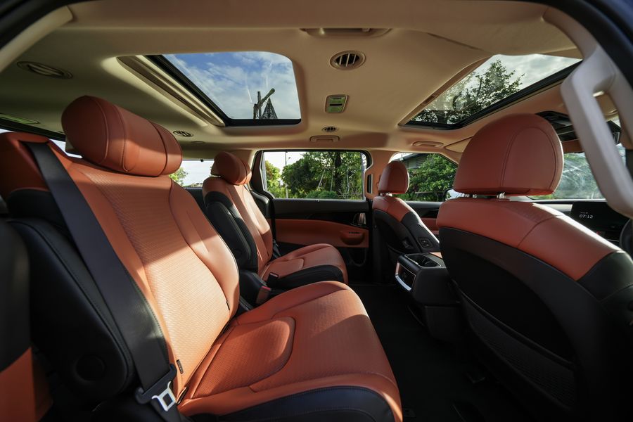 The new Kia Carnival HEV 7-seater ยังคงโดดเด่นในเรื่องความกว้างขวางสำหรับทั้งผู้โดยสารและสัมภาระ รวมถึงการปรับเปลี่ยนรูปแบบการจัดเรียงที่นั่งผู้โดยสารที่มีความยืดหยุ่น โดยถือเป็นรถ MPV ที่รองรับผู้โดยสารได้สูงสุด 7 ที่นั่ง พร้อมด้วยสัมภาระของทุกคนได้อย่างสะดวกสบายด้วยรถคันเดียว เบาะนั่งแถวสามมาพร้อมฟังก์ชันพับราบ ที่เป็นการสร้างพื้นที่บรรทุกแบบเรียบที่รวดเร็วและไม่ต้องใช้แรง ปรับเปลี่ยนได้ทันทีระหว่างความต้องการในการขนย้ายคนและขนส่งสินค้า
