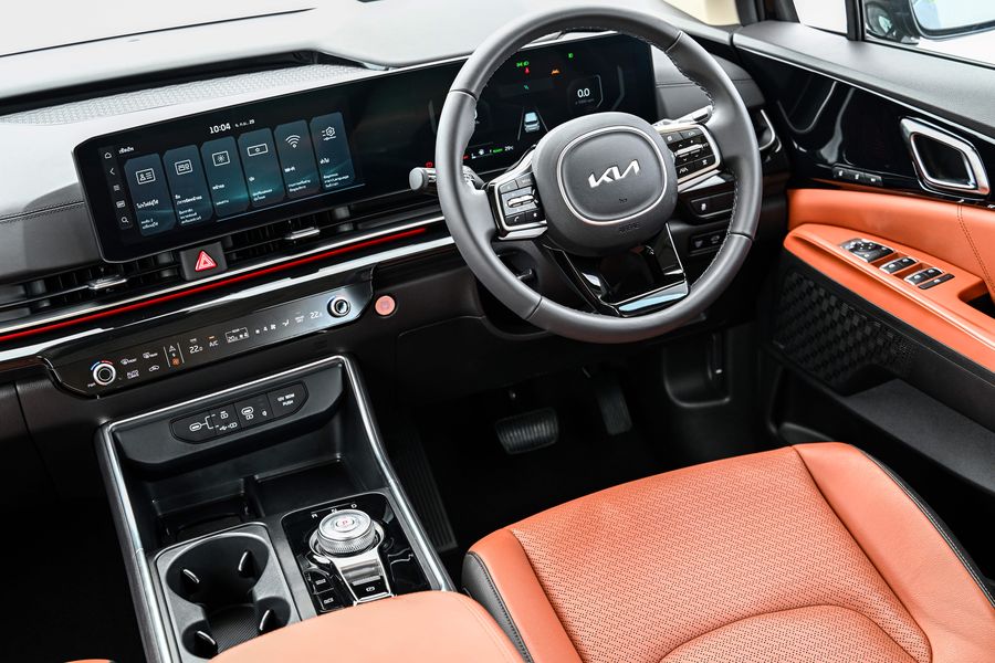 ห้องโดยสารของ The new Kia Carnival HEV 7-seater ได้รับการออกแบบให้กว้างขวางและร่วมสมัยด้วยดีไซน์ใหม่ ประกอบด้วยจอโค้งแบบพาโนรามิกที่ผสานรวมจอแสดงผลแบบคลัสเตอร์ขนาด 12.3 นิ้ว หน้าจออินโฟเทนเมนท์แบบสัมผัสขนาด 12.3 นิ้ว เข้าไว้ด้วยกันแบบไร้รอยต่อ มีระบบเชื่อมต่อ Android Auto™ และ Apple CarPlay® แบบไร้สายและฟังก์ชันสั่งงานด้วยเสียง มีระบบปรับอากาศด้านหน้าแบบอัตโนมัติที่สามารถปรับอุณหภูมิได้แบบแยกอิสระทั้งโซนด้านหน้าฝั่งซ้าย-ขวา และโซนด้านหลัง
