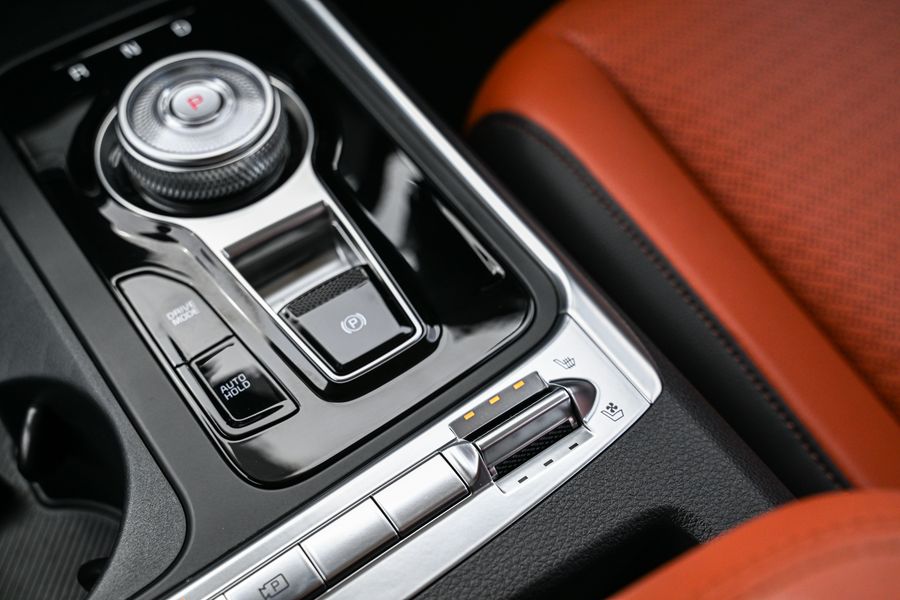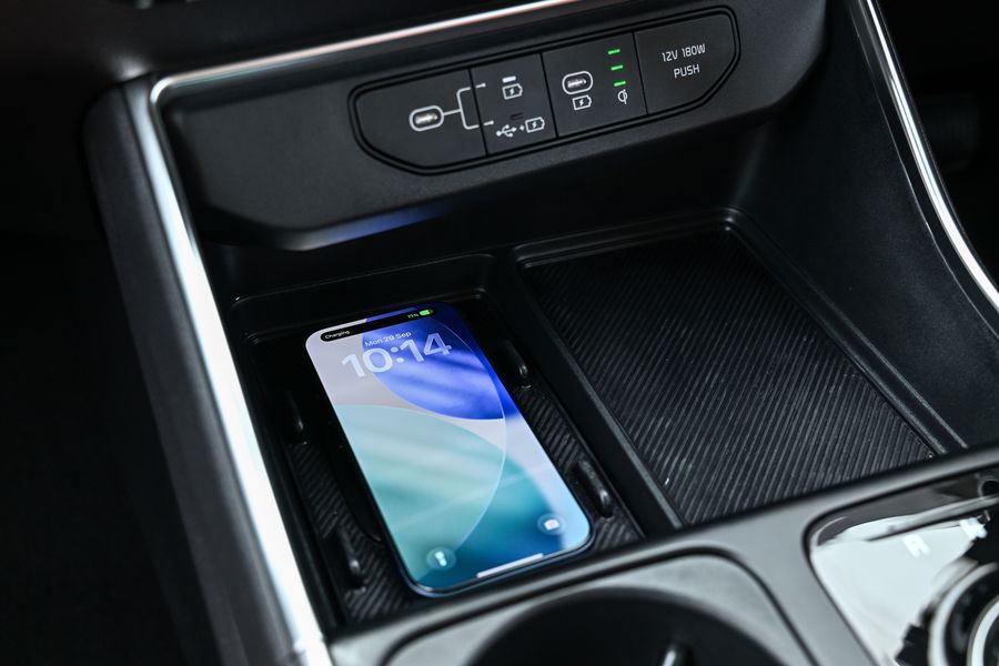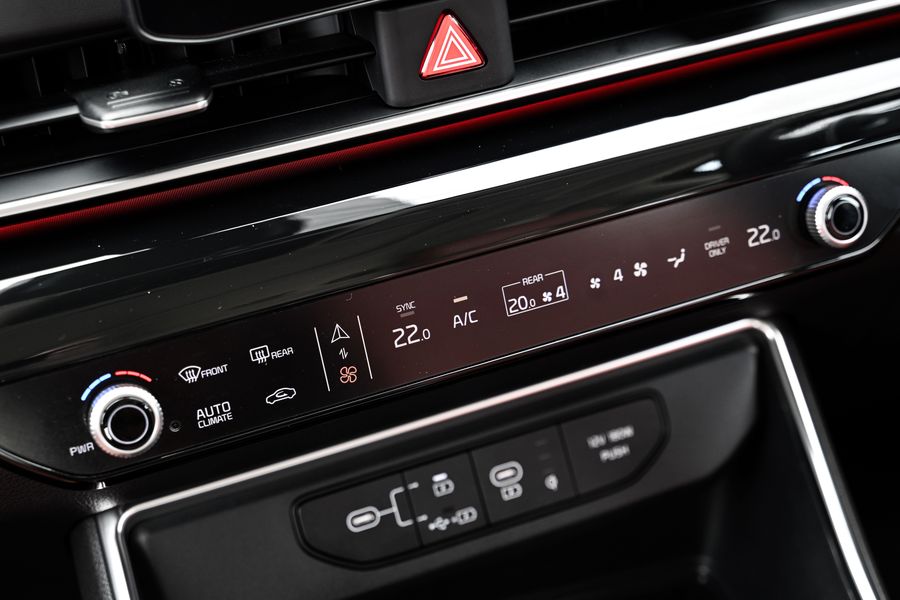 นอกจากนี้ ยังมีสวิตช์สำหรับสลับการควบคุมระบบอินโฟเทนเมนต์และระบบปรับอากาศที่ผสานการควบคุมทั้งระบบไว้บนอินเตอร์เฟซเดียวกัน เพียงแค่สัมผัสหนึ่งครั้งก็สามารถสลับการควบคุมไปมาระหว่างระบบอินโฟเทนเมนต์กับระบบปรับอากาศ ช่วยลดความซับซ้อนของเลย์เอาต์ในขณะที่ยังคงความสะดวกในการใช้งาน และภายในห้องโดยสารยังได้ติดตั้งพอร์ต USB-C มาตรฐาน รวม 6 พอร์ตกระจายทั้งสามแถวที่นั่ง ช่วยให้ผู้โดยสารสามารถชาร์จอุปกรณ์ของตนได้อย่างสะดวกไม่ว่าจะนั่งอยู่ตำแหน่งใดของตัวรถ