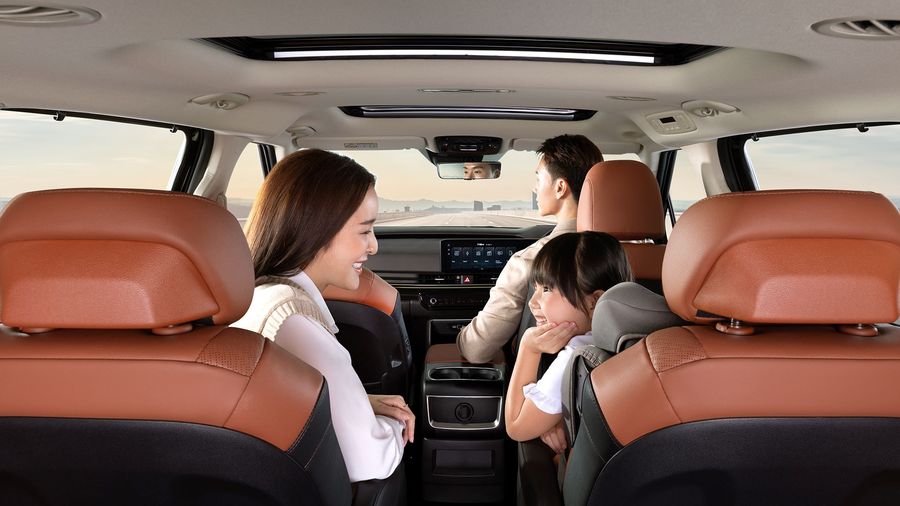 สำหรับเบาะที่นั่งของคนขับในรุ่น The new Kia Carnival HEV 7-seat Luxury ยังได้ติดตั้งระบบจดจำตำแหน่งเบาะนั่งและระบบ Welcome Seat สำหรับผู้ขับ เบาะนั่งคู่หน้าและเบาะนั่งแถวที่สองมาพร้อมระบบระบายอากาศและระบบอุ่นเบาะ สำหรับเบาะผู้โดยสารแถวสองเป็นแบบ Relaxation Seat ที่เปลี่ยนทุกการเดินทางให้เป็นความสะดวกสบายระดับเฟิร์สคลาสด้วยฟังก์ชันปรับเอนนอนที่สามารถปรับระดับได้เต็มรูปแบบ พร้อมเบาะรองขาแบบปรับไฟฟ้า มีโหมด One-touch Relaxation ที่สั่งงานด้วยการกดเพียงครั้งเดียวมอบความสบายให้กับผู้นั่งได้อย่างง่ายดาย สำหรับรุ่น The new Kia Carnival HEV 7-seat Premium เบาะนั่งแถวสองเป็นเบาะแบบ Captain Seats ที่สามารถถอดออกได้เพื่อเพิ่มความอเนกประสงค์ในการใช้งาน และยังสามารถปรับเปลี่ยนตำแหน่งให้เป็นแบบนั่งหันหน้าเข้าหากันได้ ให้สมาชิกในครอบครัวได้มีปฏิสัมพันธ์กันได้ตลอดทริป พร้อมกันนี้ The new Kia Carnival HEV 7-seater ทั้งสองรุ่นได้รับการปรับให้มีพื้นที่ทางเดิน (Walkthrough access) ที่เอื้อต่อการเข้า-ออกเบาะหลังได้สะดวกยิ่งขึ้นสำหรับสมาชิกครอบครัวทุกคน โดยเฉพาะเด็กและผู้สูงอายุ นอกจากนี้ ด้วยจุดยึดสําหรับติดตั้งเบาะนั่งสําหรับเด็ก (ISOFIX) ที่มีให้ในตำแหน่งที่นั่ง 4 ตำแหน่งเป็นมาตรฐาน (2 จุดบนเบาะนั่งแถวสอง และอีก 2 จุดบนเบาะแถวสาม) ซึ่งช่วยให้สามารถติดตั้งเบาะนั่งสำหรับเด็กในตำแหน่งต่าง ๆ ได้อย่างยืดหยุ่น เสริมความปลอดภัยและความสะดวกเพื่อตอบสนองความต้องการของครอบครัวได้ดีที่สุด