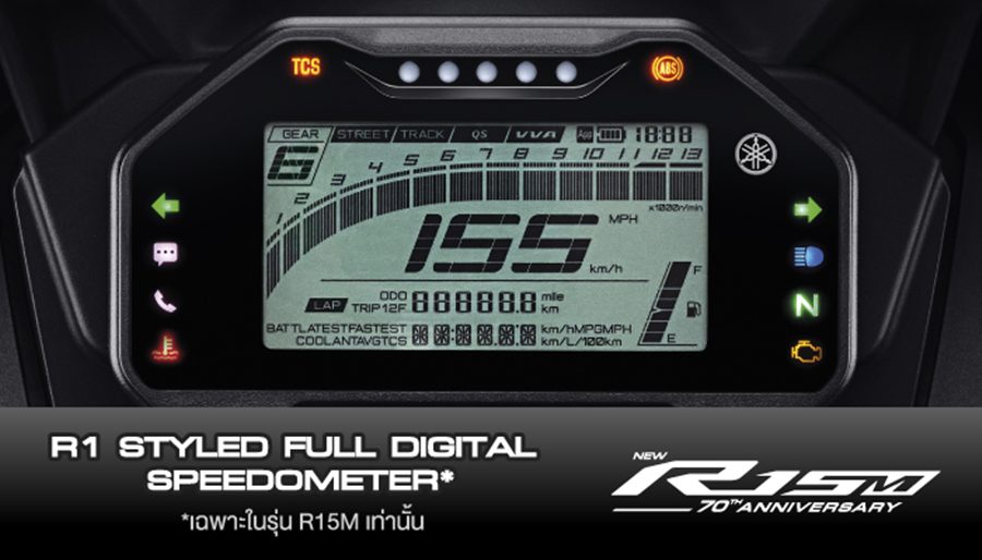 นอกจากนี้ ไทยยามาฮ่ายังร่วมเฉลิมฉลองวาระสำคัญ ครบรอบ 70 ปี ยามาฮ่ามอเตอร์ ด้วย NEW R15M 70th Anniversary ที่ถ่ายทอดแรงบันดาลใจจาก R1 First Generation ต้นกำเนิดสายพันธุ์ซูเปอร์สปอร์ต R-SERIES พร้อมฟีเจอร์ระดับซูเปอร์ไบค์ที่มีเฉพาะในรุ่นนี้ ได้แก่