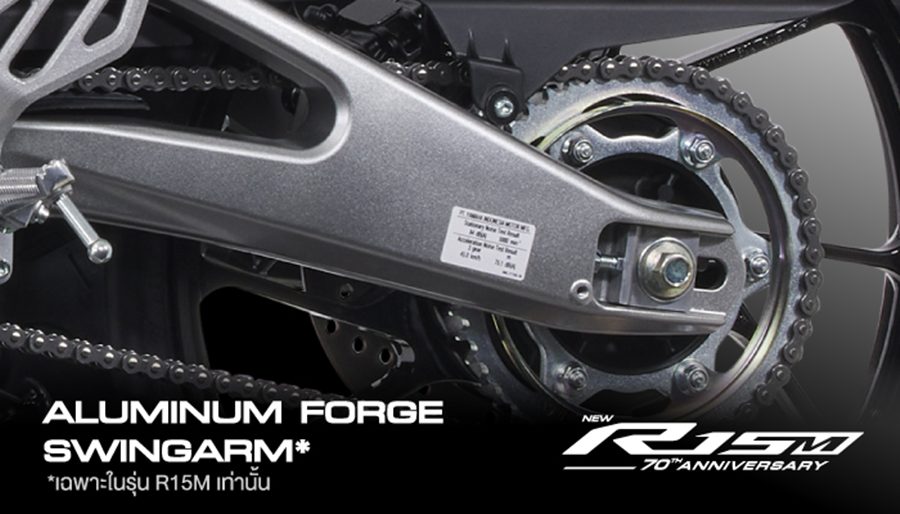 - ALUMINUM DIE-CAST SWINGARM สวิงอาร์มอลูมิเนียมหล่อขึ้นรูป ดีไซน์สีเงิน ถ่ายทอดความสปอร์ตจากรุ่นพี่ R1M